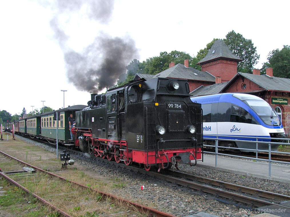 Auch mit der Schmalspurbahn "Rasenden Roland" kann man die Insel erkunden... (Quelle: Wikipedia, Foto: Lapplaender)